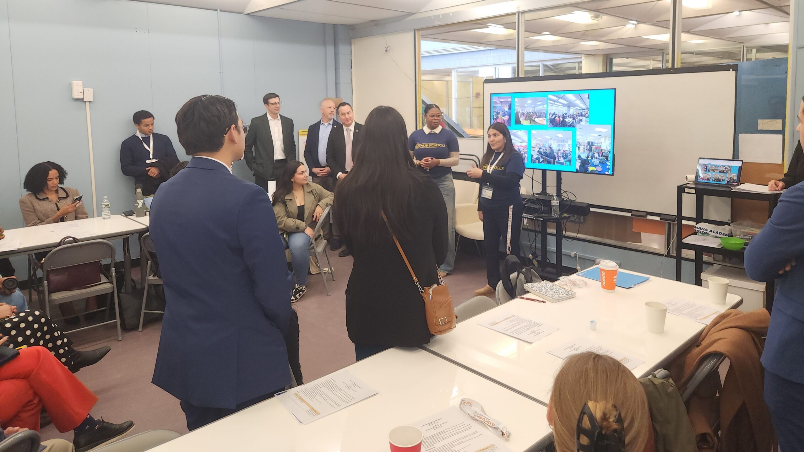 A large delegation descended on the Mario Umana Academy in East Boston to learn about the school’s impressive efforts to build community at an especially challenging moment for a neighborhood. The PK-8 public school serves a largely immigrant East Boston neighborhood. In recent years, the community has been squeezed on all sides with gentrification, ICE raids, and the ups and downs of a post-pandemic economy.
