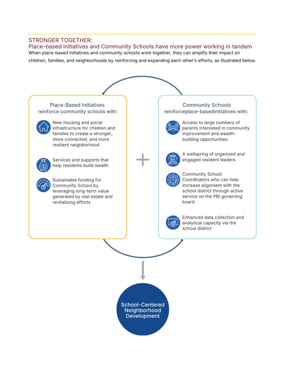 This analysis draws on a landscape scan of 10 established backbones across the US to better understand how these organizations operate. In particular, it homes in on linkages between place-based initiatives and Community Schools. When these closely related models work together, each can strengthen and extend the other’s efforts, amplifying their impact on neighborhoods that have suffered from decades of disinvestment.